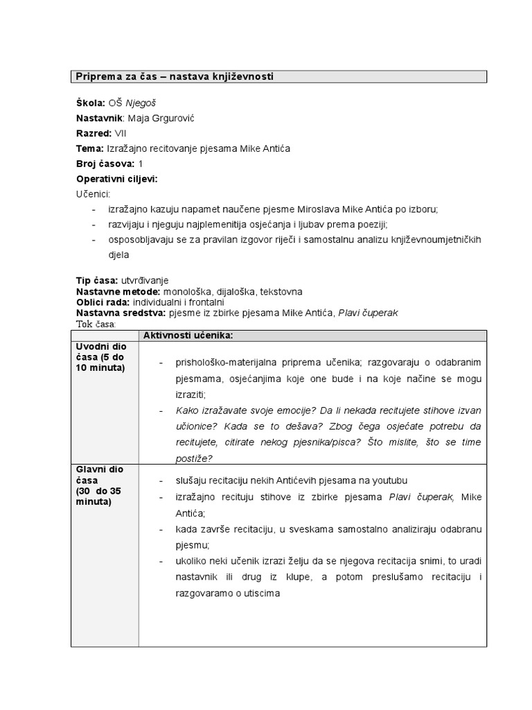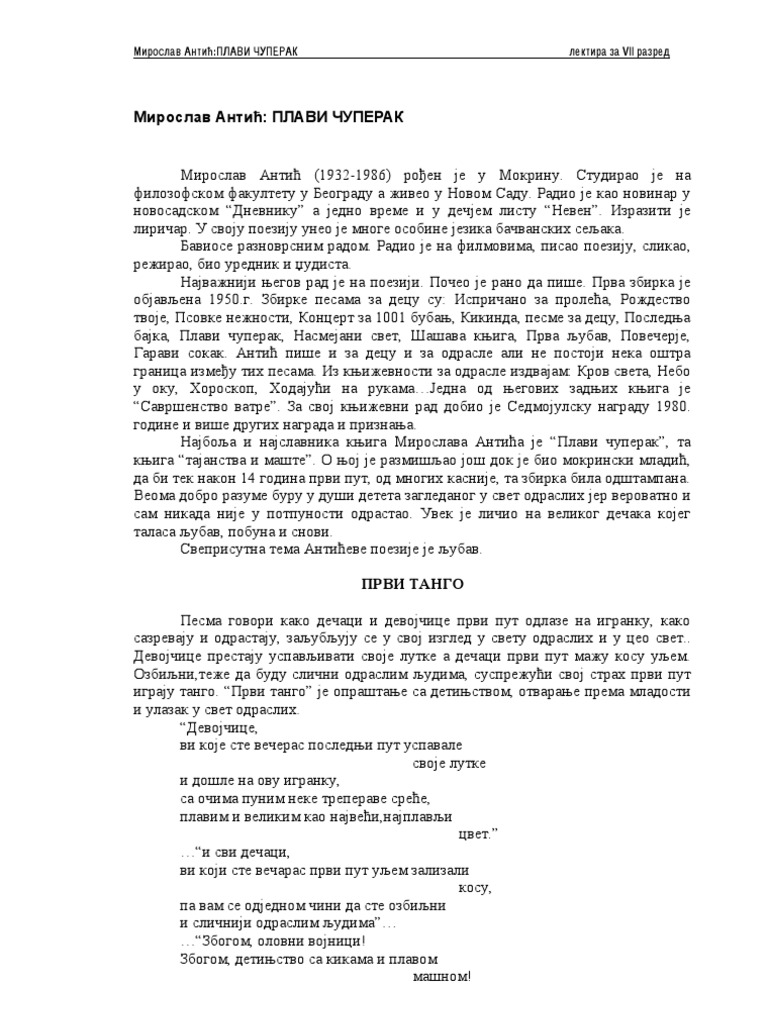 Analiza Pesme Plavi Cuperak Delo Miroslava Antica Beleske