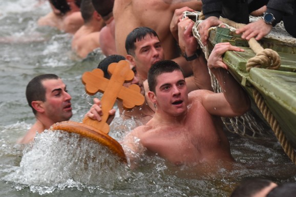 Najlepsa Fotka Dana Nemanja Prvi Doplivao Za Casni Krst Zaplivali Vitezovi Uoci Bogojavljenja Telegraf Rs