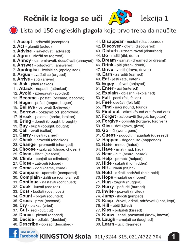 Lista Od 150 Engleskih Glagola Koje Prvo Treba Da Naucite