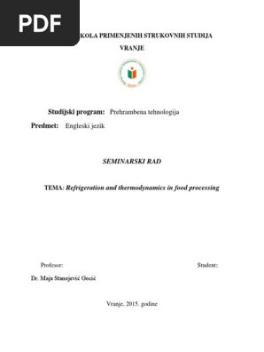 Studijski Program Prehrambena Tehnologija Predmet Engleski Jezik Refrigeration Thermal Insulation Free 30 Day Trial Scribd