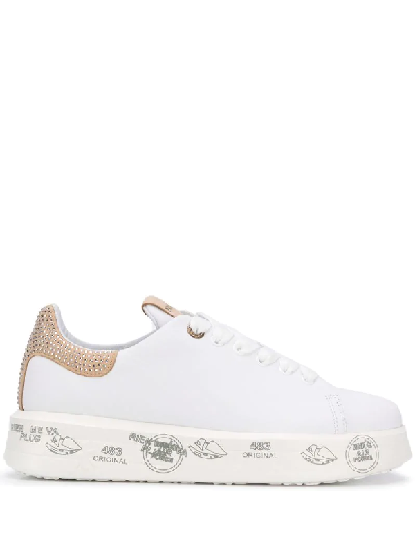 Premiata Belle Rhinestone Embellished Sneakers In White Modesens