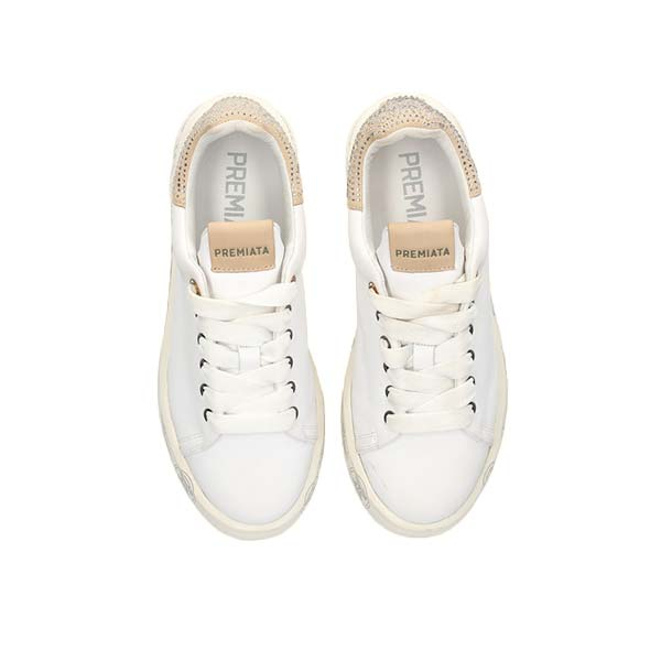 Belle Leather Sneakers With Rhinestones On The Back 4540 Optical White Premiata Belle 4540 Caposerio Com