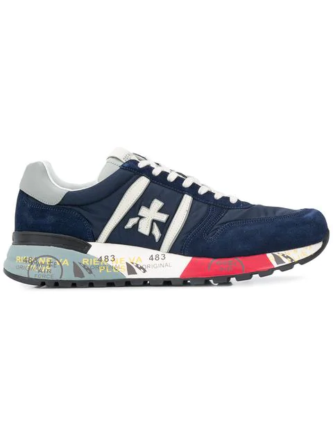 Men S Premiata Lander Blue Leather And Fabric Sneakers