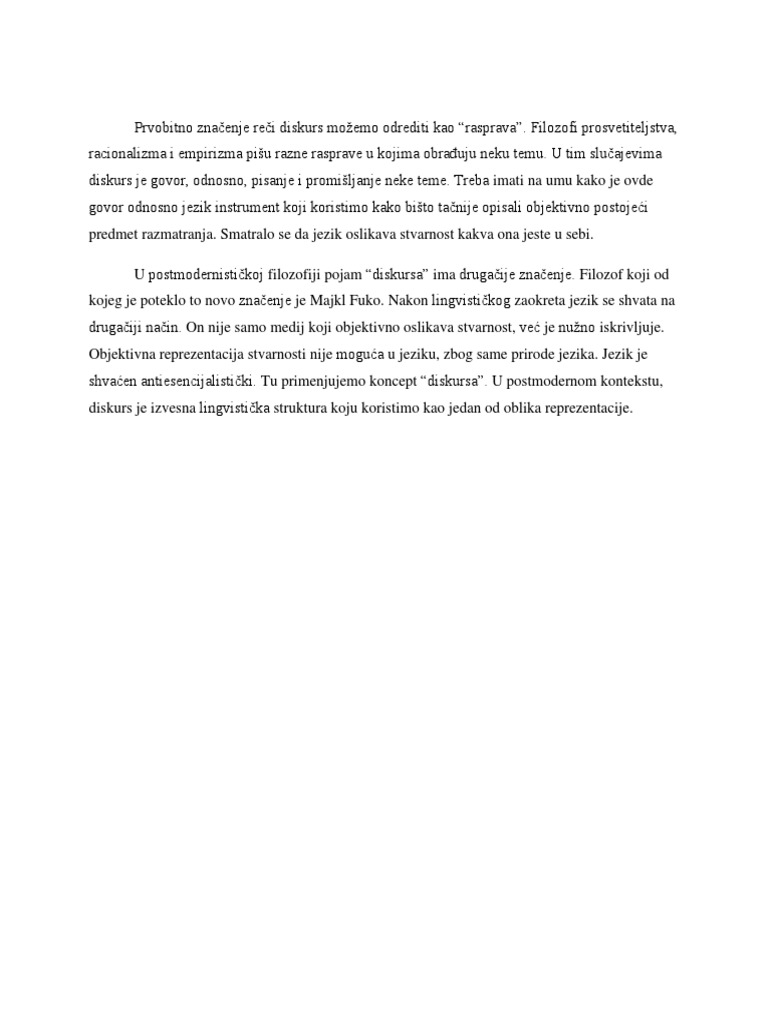 Prvobitno Znacenje Reci Diskurs