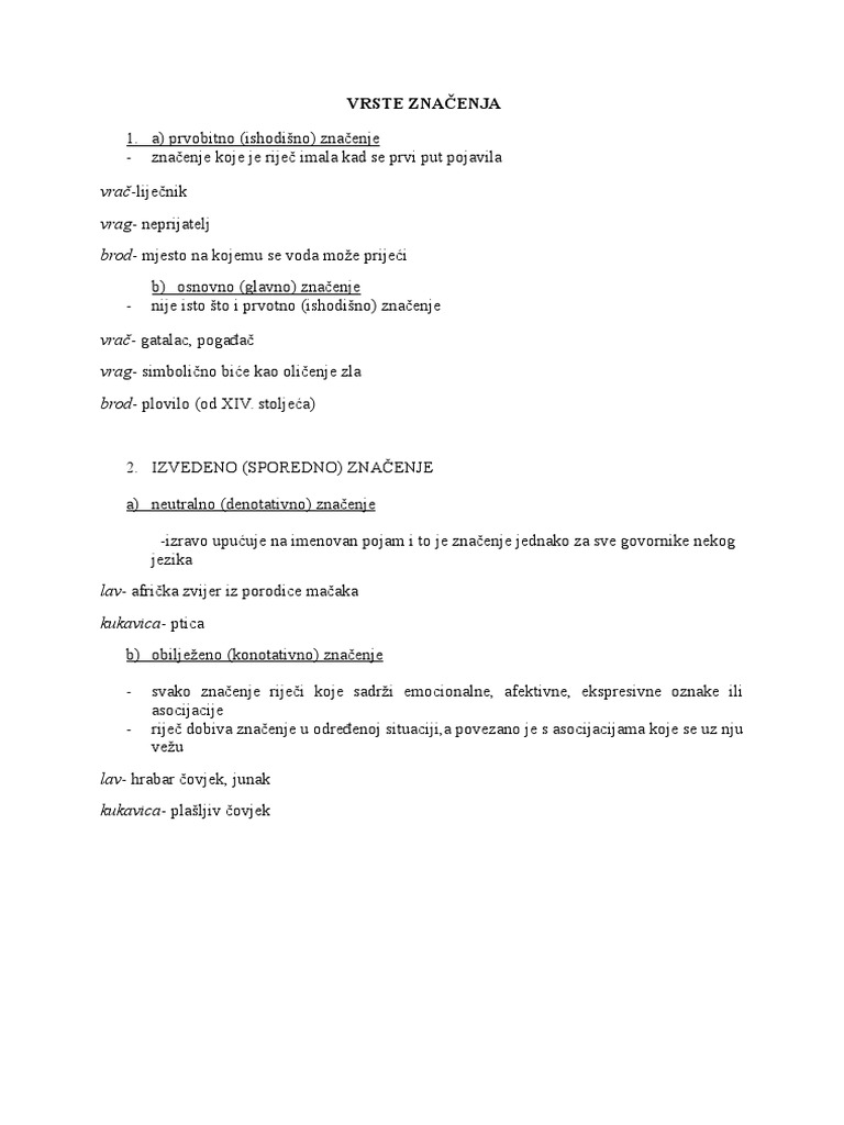 Vrste Znacenja