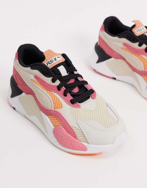 Puma Rs X3 Mesh Pop Sneakers In Pink And Cream Asos