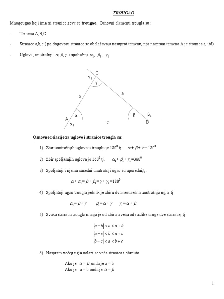 Osnovne Relacije Za Uglove I Stranice Trougla Su Trougao