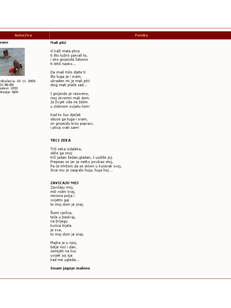 Stihovi Za Polazak U Vrtic