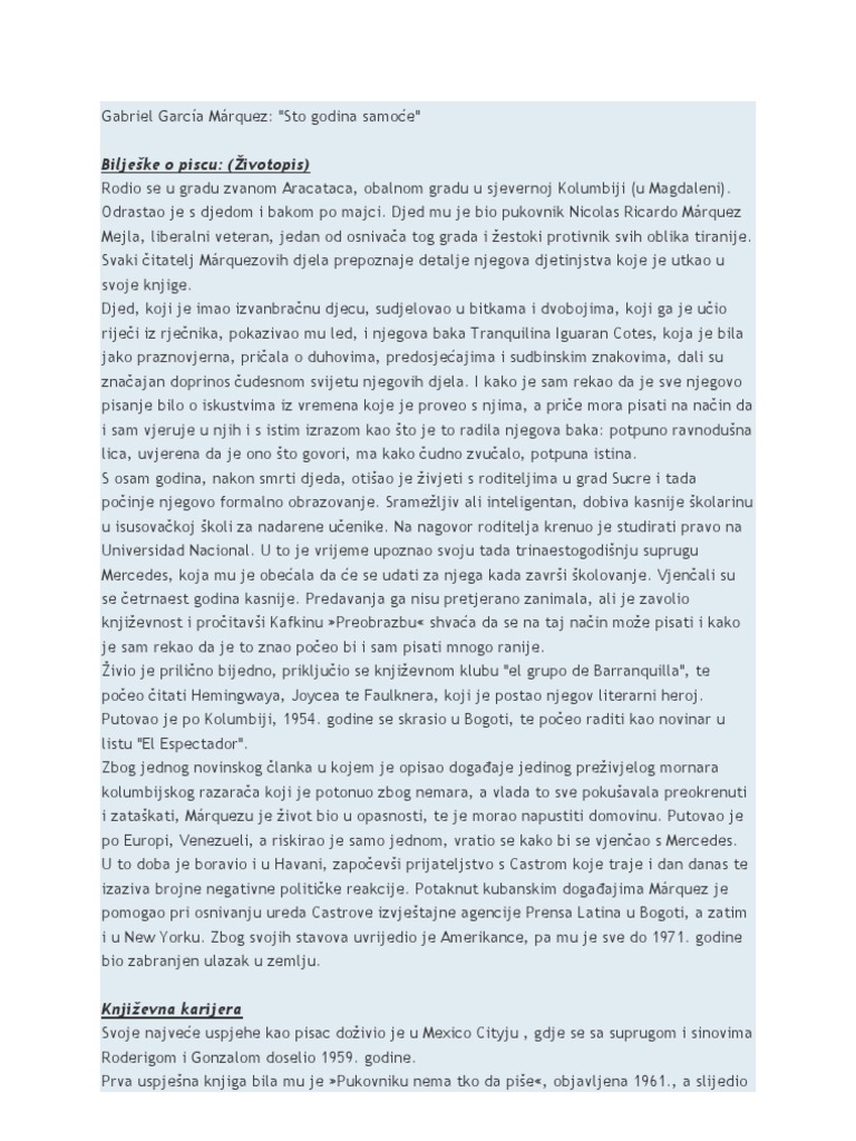 Sto Godina Samoce Gabrijel Garsija Markes Pdf
